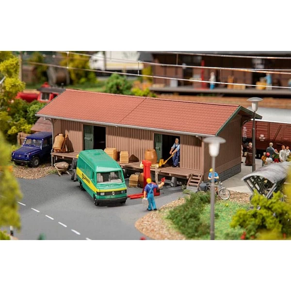 Floor model of a white, rail-mounted gantry crane with hoist and trolley for vertical and horizontal lifting operations with heavy loads, e.g. for the assembly of tunnel boring machines on tunnel construction sites. Generic depiction with imprint of the HERRENKNECHT lettering. Track profiles enclosed. Model NOT functional.