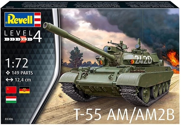 This is a 1:72 scale replica of the T-55AM/T-55AM2B. The T-55 series remains the most mass-produced tank. It served as the MBT for over 50 countries around the world. The kit contains 149 parts and the finished model is 124 mm long.
