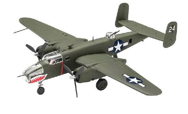 Simple model kit of the B-25 Mitchell, a 2-engine bomber of the USAAF.