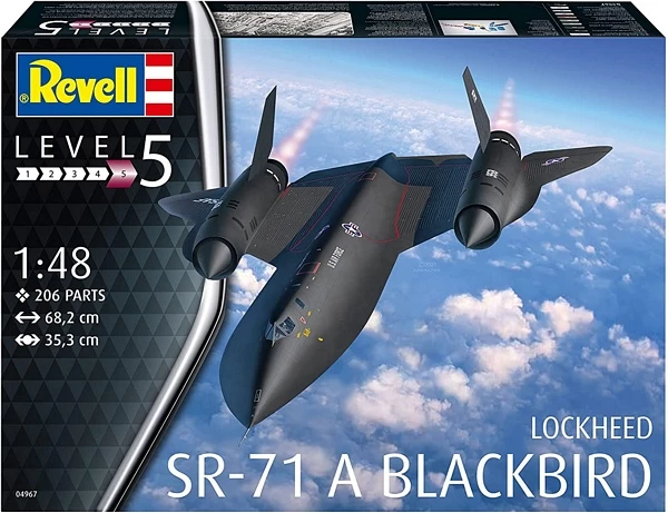 Model: This unique airplane flew at 2,000 mph at altitudes that are still classified. With high-tech electronic equipment onboard, it gathered strategic reconnaissance information for the U.S. military for over 25 years. Features: Accurate surface detail, can be built as drone carrier (drone included), waterslide decals. The SR-71 was developed by Lockheed’s “Skunk Works” to replace the U-2 high altitude spyplane which had become vulnerable to interception by surface-to-air missiles. The SR-71 is very fast and with a top speed in excess of 2100mph it still holds many world speed records. In the early ’90s the SR-71 fleet was mothballed but several aircraft have been reactivated by the continuing need for a manned reconnaissance capability.