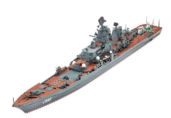 A model construction kit of one of the largest military ships in the world the nuclear-powered Russian Kirov-class battle cruiser.