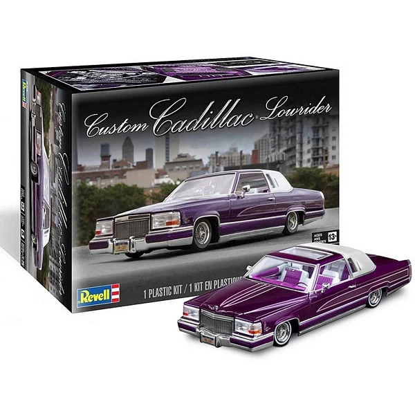 Model: When you bring on the “Bling”, you need to do it in style. What better way than with a Caddy. In 1984, GM produced the last of the full-size Cadillacs. With their classic body on frame construction, these late model Cadillacs make the best lowriders. They are perfect for going way down low or way up high. For power, this Cadillac has the big 4.1 liter V-8 engine hooked up to a rear wheel drive. This 80’s Cadillac is not quite as big as the earlier versions, but is still very big for a car today. This two door Coupe DeVille is especially popular with the lowriders. There’s plenty of room for all the pumps and hydraulics needed to make the car dance lowrider style. This Revell Coupe DeVille has the popular later-model Brougham headlights along with lower body trim for a more classic look.